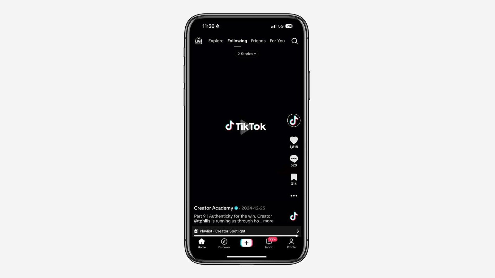 Se deslizar a tela para a esquerda, você encontrará mais feeds, como Amigos, Seguindo (com vídeos de usuários que você segue), Explorar eSTEM(se disponível).